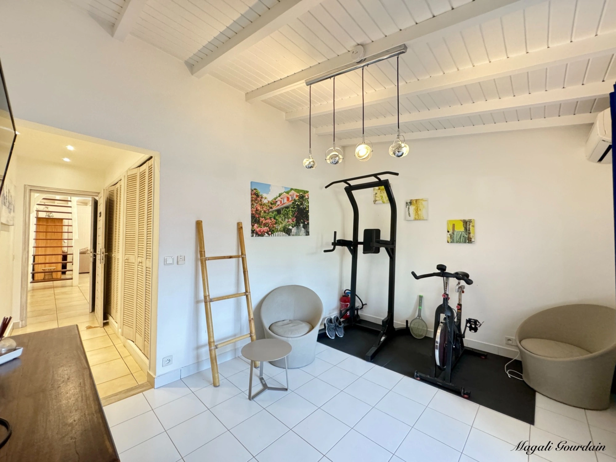 Located on a completely flat plot of 1,148m2, this property also has an exotic garden that adds a touch of greenery and serenity to the whole. You will immediately be seduced by its huge terrace of over 100m2, ideal for enjoying evenings outdoors. The friendly kitchen, equipped with bar chairs, is perfect for sharing a drink with friends.